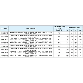 KLÍMA KÜLTÉRI REZGÉSCSILLAPÍTÓ GUMIBAK TECNOSYSTEMI S50 SCC500020 50X40 M10 (140KG TEHERBÍRÁS / ÖSSZESEN) 4DB/CSOMAG