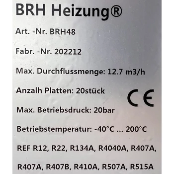 LEMEZES HŐCSERÉLŐ BRH48 KIS ELLENÁLLÁSÚ,20LEMEZ,12,7M3/H,4X1",124X304X60MM FELÜLET:0,6M2