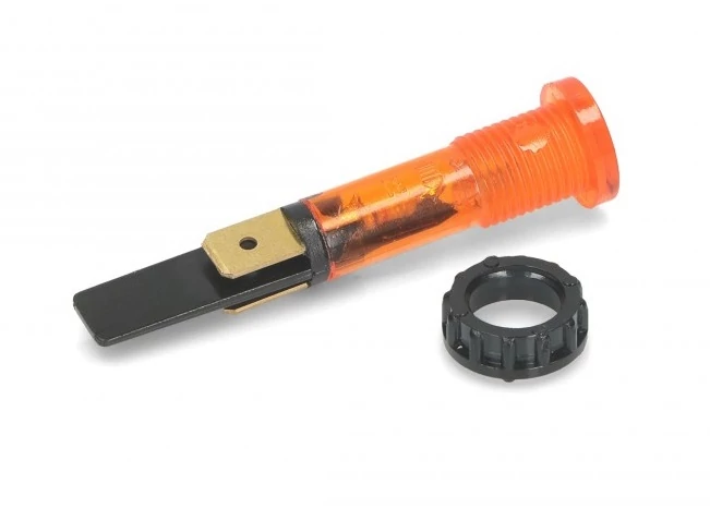 SX31 sorozat. 230V, 120°C. Csatlakozás a Fastonhoz 6,3x0,8. Rögzítés ellenanyával szerelve. Fej Ø13,5mm, furat Ø10mm