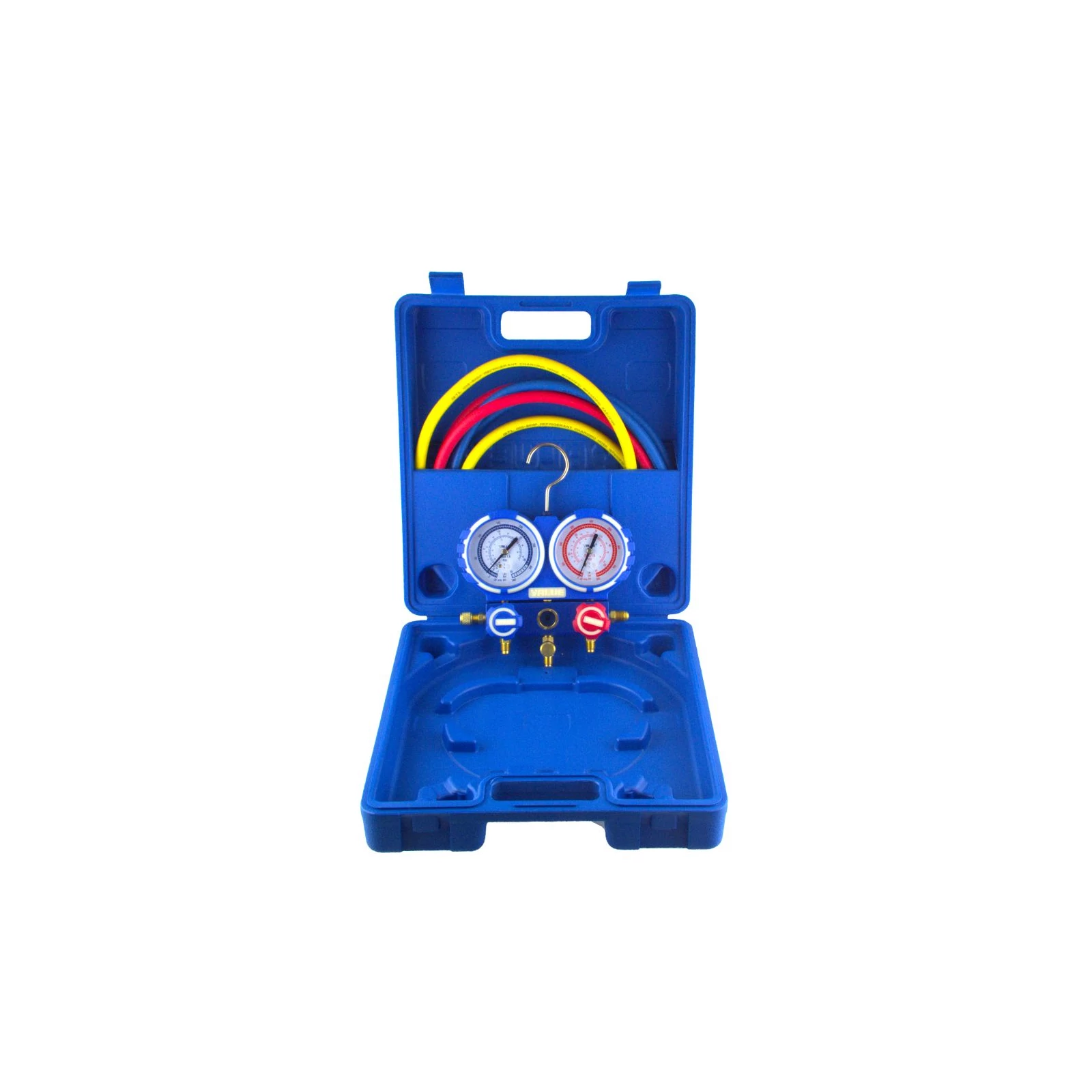A töltőcsövek hossza 150cm, Piros(1/4”-5/16” SAE), Kék(1/4”-5/16”SAE), Sárga (1/4”-1/4” SAE). A teljes készlet ütésálló műanyag kofferrel rendelkezik a biztonságos tárolás és szállítás érdekében.