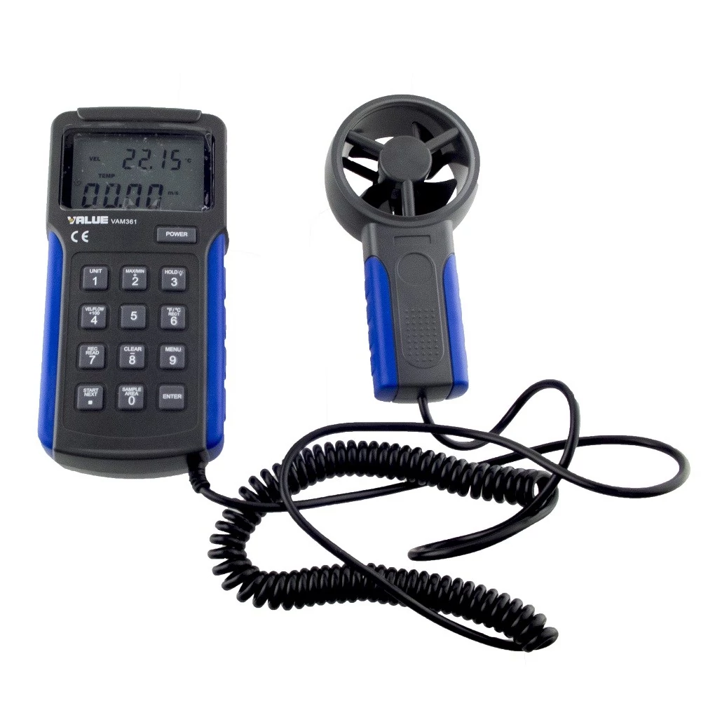 A VAM361 képes pillanatnyi légsebesség (m/s, km/h, knots, stb), légáram (CFM, CMM) és levegő hőmérséklet (°C, °F) mérésére.