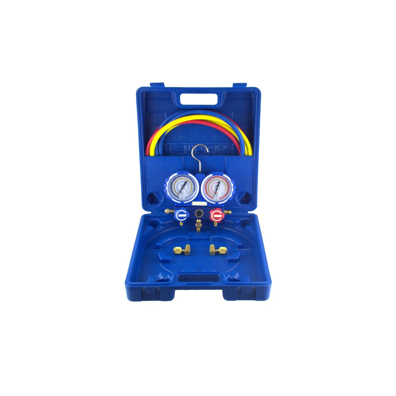 A táska tartalma: manométer, 3db 150cm tömlő, 2db szervíztömlő adapter